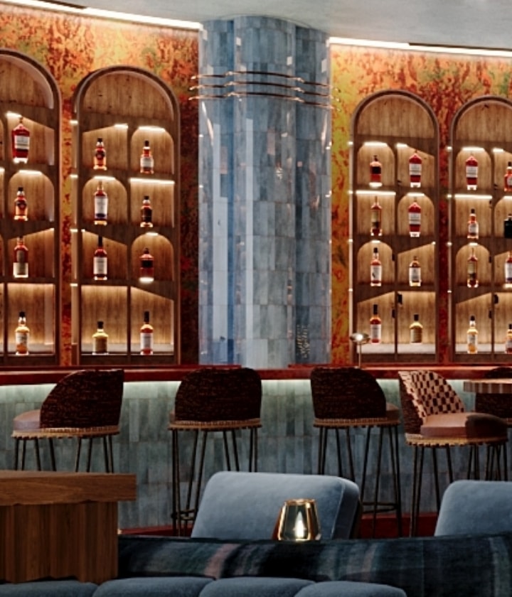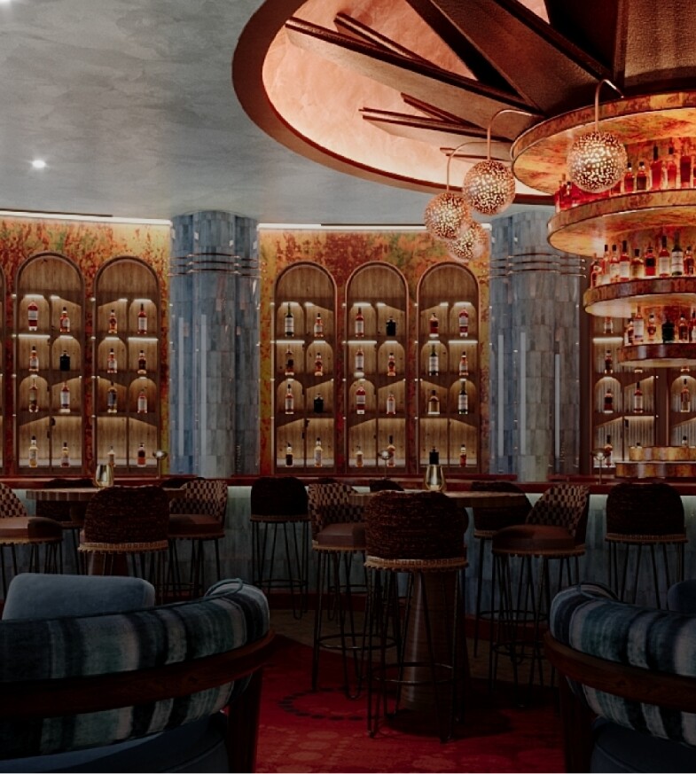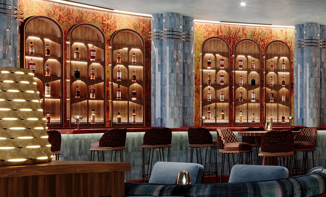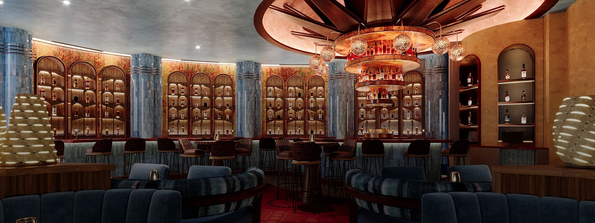 Deliciously moody and seductive, Azul is inspired by the authentic mezcalerias of Mexico. Tantalizing the senses with desert sunset hues and flickering candles, it’s a journey into Latin intrigue with a robust menu of unique tequilas and mezcals enjoyed around an agave-shaped central bar.