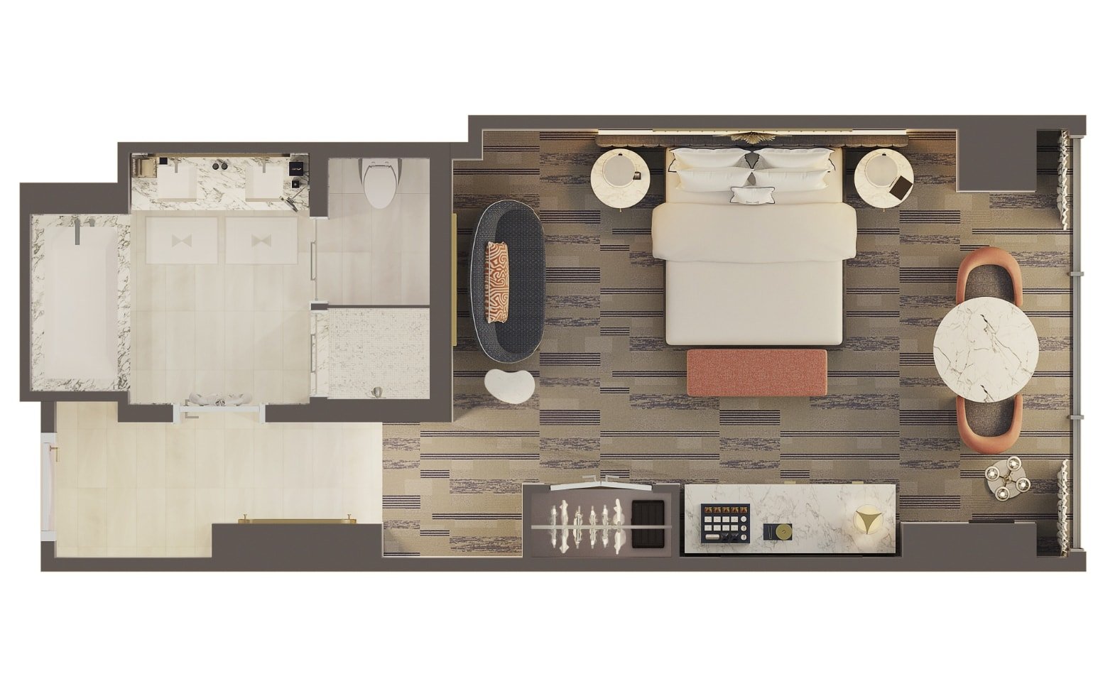 Beautifully detailed, the Gold guest rooms offer up to 100SF more space to spread out and relax.