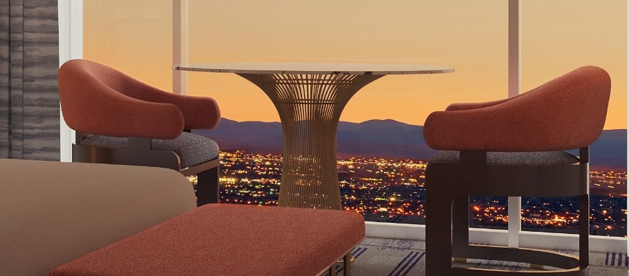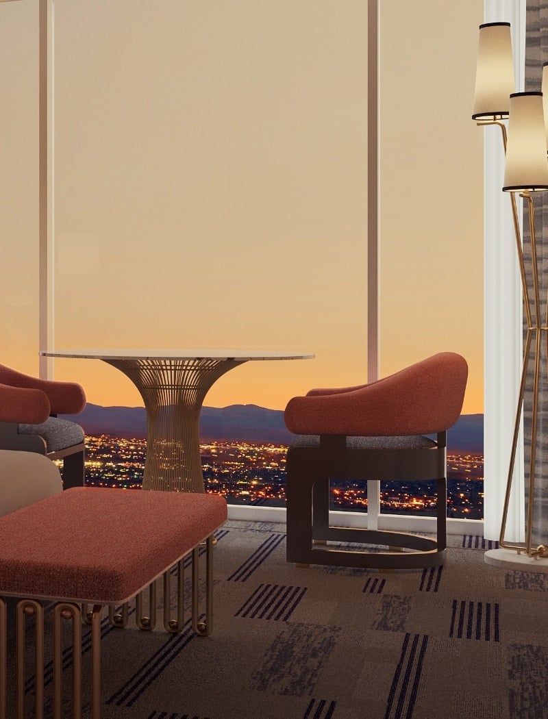 Enjoy an elegant lounge area with breathtaking Strip views.