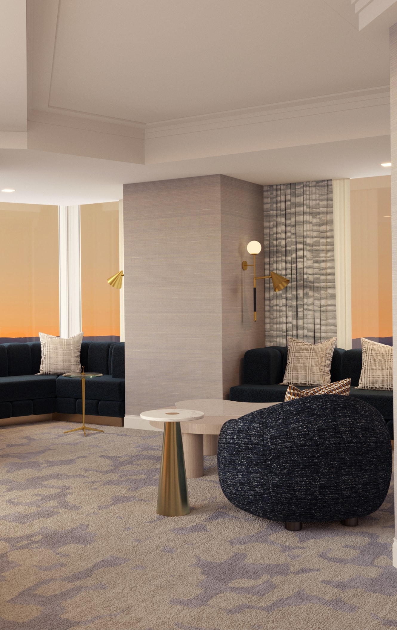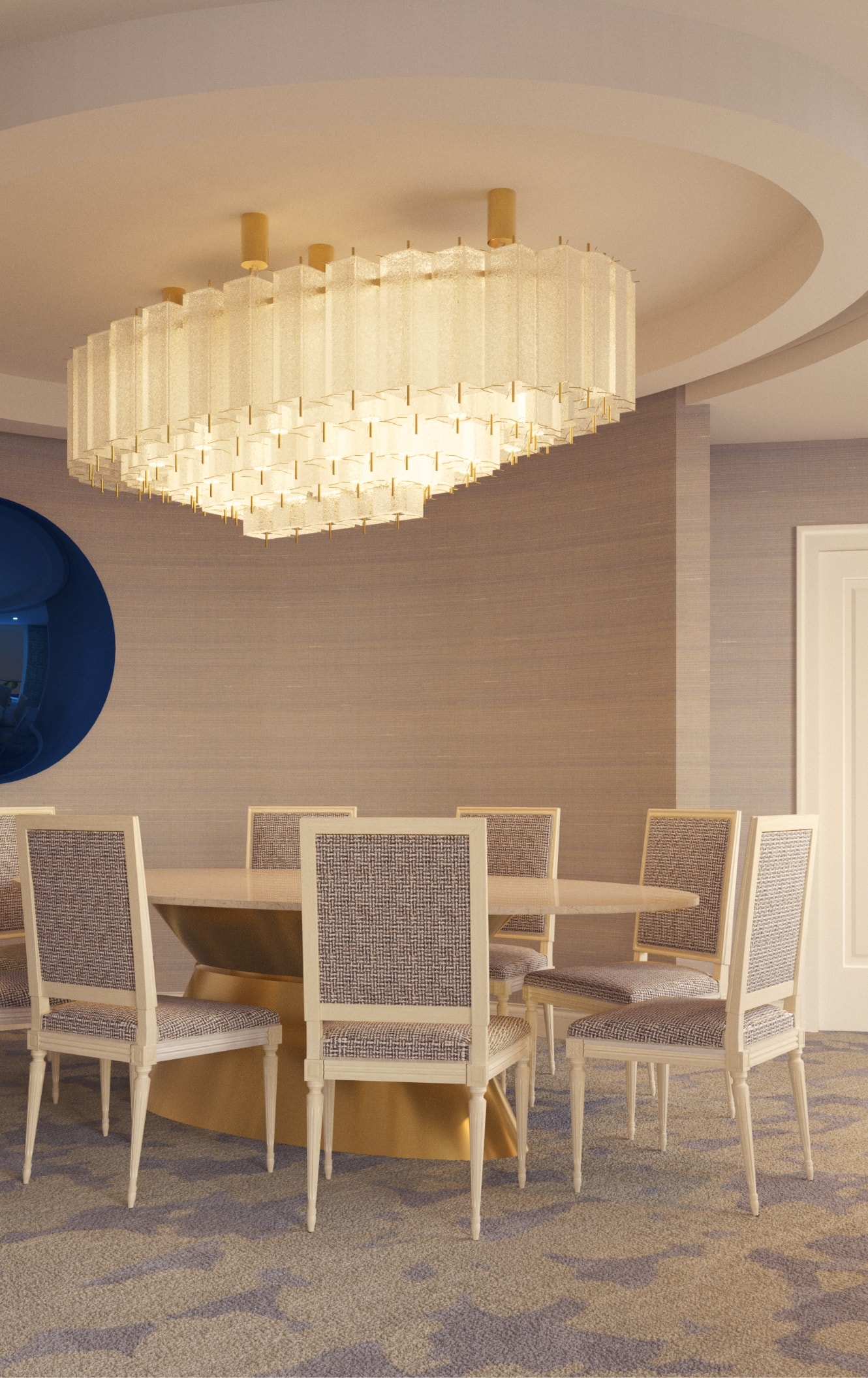 Relax in luxury including pool table, dining table for six, plush seating areas, and breathtaking views in the largest luxury suite.