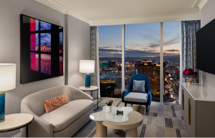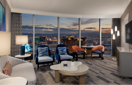 Enjoy an elegant lounge area with breathtaking Strip views.